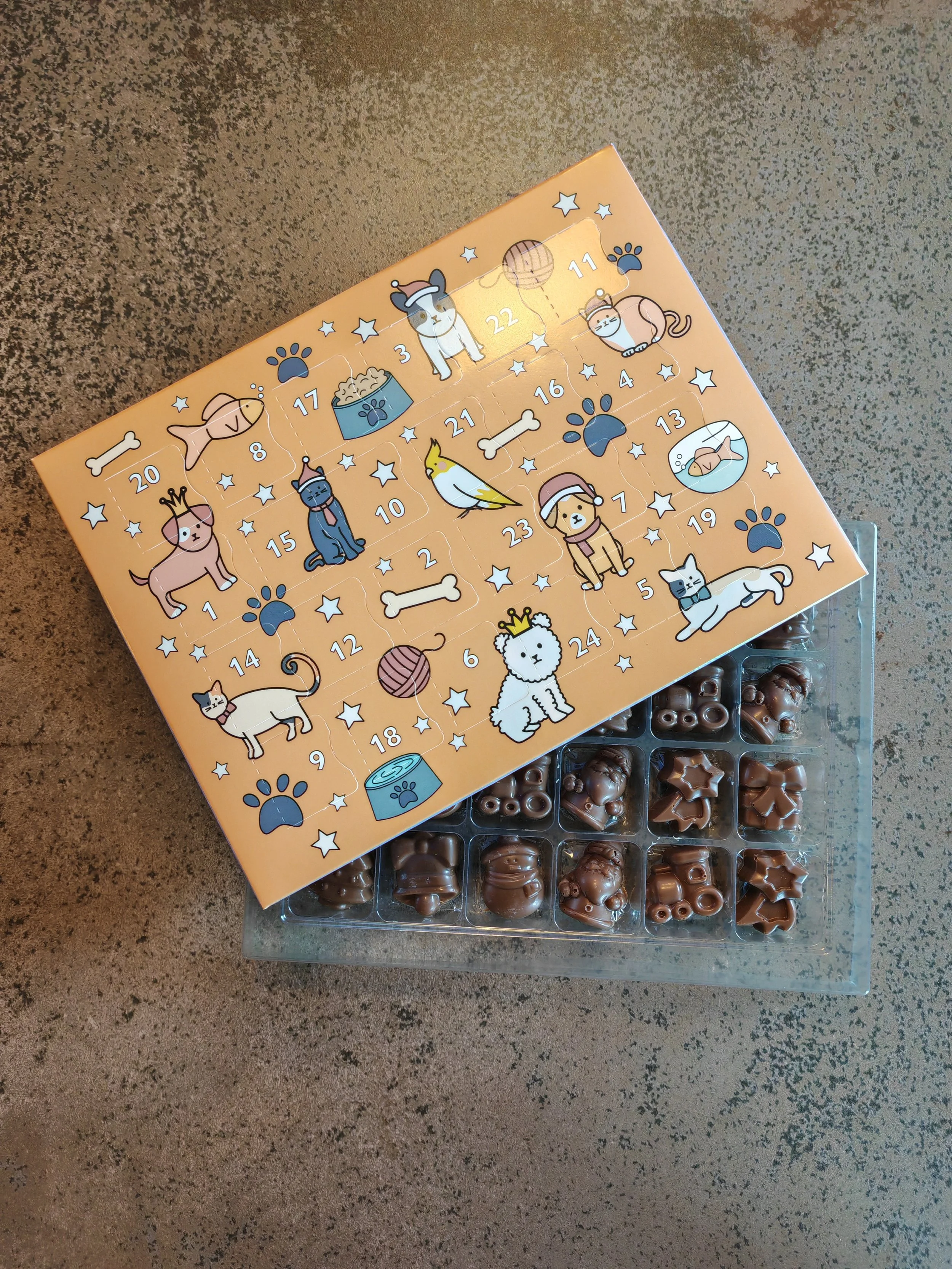 Christmas & Chocolate Boxes Chunky Advent Calendar Cats & Dogs Sale Price: £12.50 Original Price: £15.00 Sale Milk Dark White Mixed Add To Cart Added! Chunky Advent Calendar Reindeers Sale Price: £12.50 Original Price: £15.00 Sale Milk Dark White Mixed Add To Cart Added! Box of 24 Chocolates Assorted £35.00 Add To Cart Added! Box of 24 Chocolates Create Your Own £35.00 Add To Cart Added! Box of 12 Chocolates Assorted £20.00 Add To Cart Added! Box of 12 Chocolates Create Your Own £20.00 Add To Cart Added! Box of 6 Chocolates Assorted £12.00 Add To Cart Added! Box of 6 Chocolates Create Your Own £12.00 Add To Cart Added!